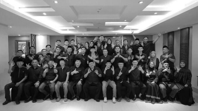 Suasana acara terlihat semakin kompak dengan tema busana serba hitam yang dikenakan para peserta. Daeng Manye bersama para alumni IPDN tampak mengenakan setelan hitam, menciptakan kesan elegan sekaligus menunjukkan kebersamaan dalam momentum silaturahmi Ramadan tersebut.
