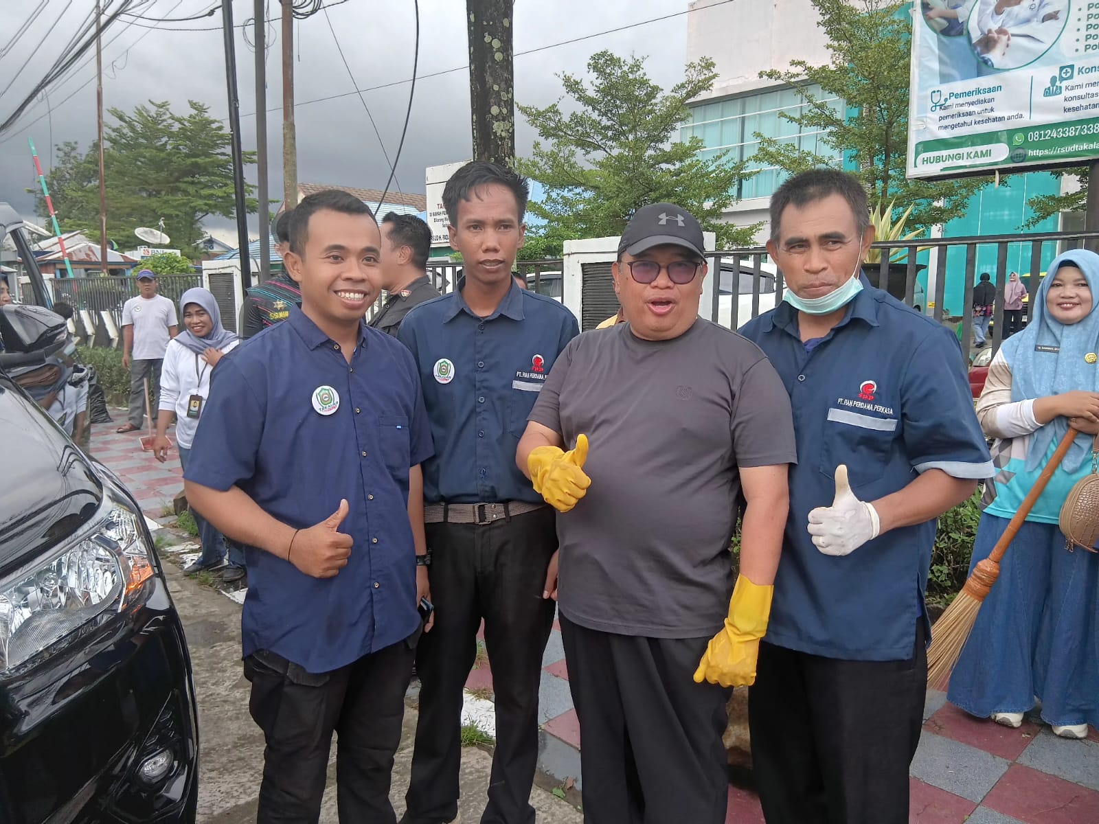 Dengan sarung tangan kuning yang masih dikenakan, Daeng Manye berdiri di tengah pegawai sebagai simbol komitmen bersama menjaga kebersihan.