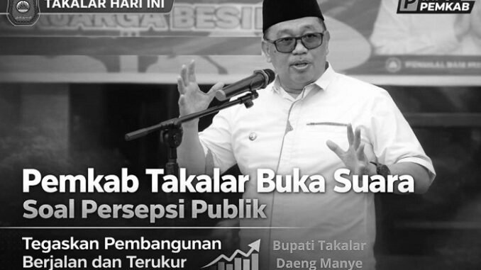 mediahitamputih.com.-Tengah berkembangnya pandangan sebagian masyarakat terkait belum meratanya dampak pembangunan, Pemerintah Kabupaten Takalar menegaskan bahwa capaian yang diraih saat ini merupakan hasil kerja nyata yang terus berproses dan bertahap dirasakan oleh masyarakat.
