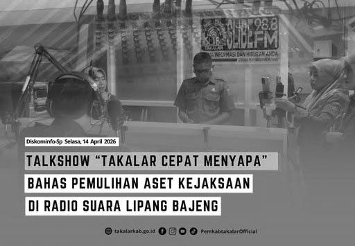 mediahitamputih.com.—Program talk show “Takalar Cepat Menyapa” yang diselenggarakan oleh Bidang Humas Dinas Komunikasi, Informatika, Statistik, dan Persandian (Diskominfo-SP) Kabupaten Takalar kembali hadir di Radio Suara Lipang Bajeng, Selasa (14/4/2026).